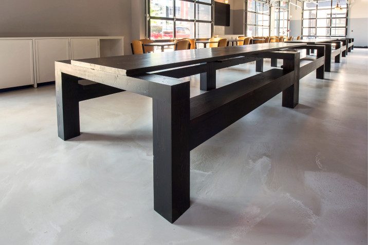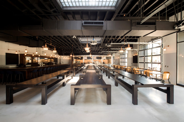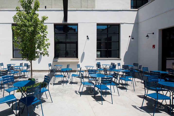 Two 8’ wide x 92’ long light wells were inserted in the center of the building, bringing light to interior offices and corridors. The building was updated with new mechanical systems, a central circulation core with elevators and stair, as well as roof-top photovoltaic panels. A beer hall and food court with an exterior courtyard was connected to the main office building.