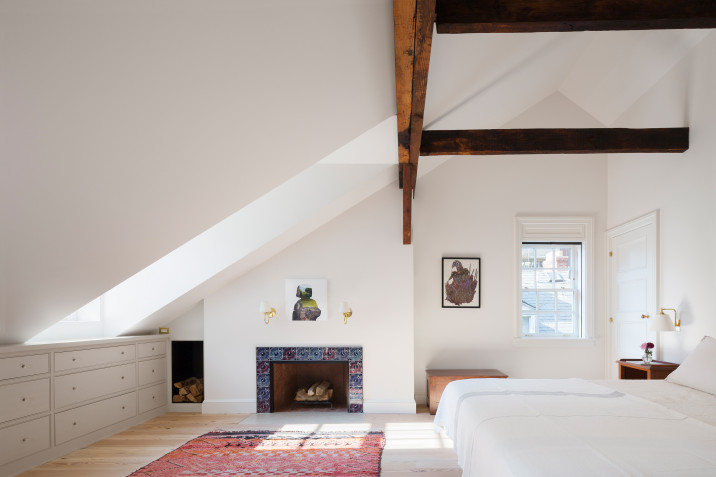 Outside, YUN upgraded the windows, the dormers, front door wood enframement, and the rear yard porch, returning the structure to its former glory. The main stair was moved to the center of the house, creating a gracious ascent from the open living room and kitchen at parlor level to bedrooms on the upper levels.