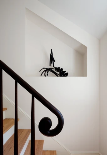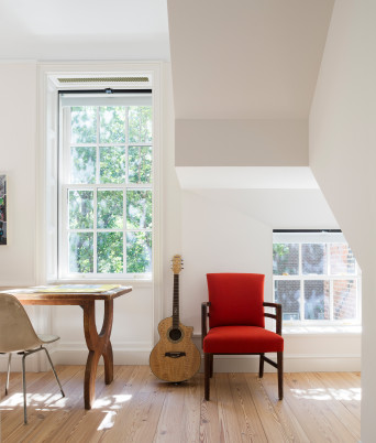 This Federal-style townhouse, once located in the historical Washington Street Market, was given individual landmark status as part of the Washington Street Urban Renewal Plan during the 1970s. One of nine houses, the historical significance of these houses is inextricably tied to the development of the NYC Landmarks Preservation Commission. Having fallen into a state of disrepair, YUN was brought in to carefully restore the exterior of the house and reenvision the interior into a highly crafted, contemporary dwelling.